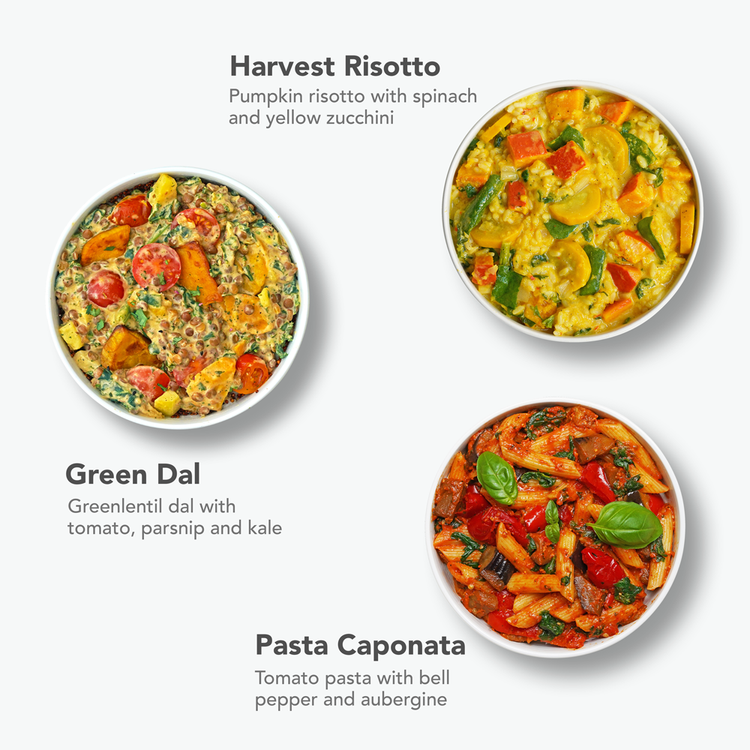 The boxes are quite compact (17cmx14cmx5cm). 6-8 boxes will fit into a small freezer compartment in a normal fridge. If you have an entire freezer drawer, 12 boxes will fit easily. If you’ve got limited space available, you can also keep the boxes in the fridge for two days and eat them right after. Don’t refreeze them after they’ve thawed.